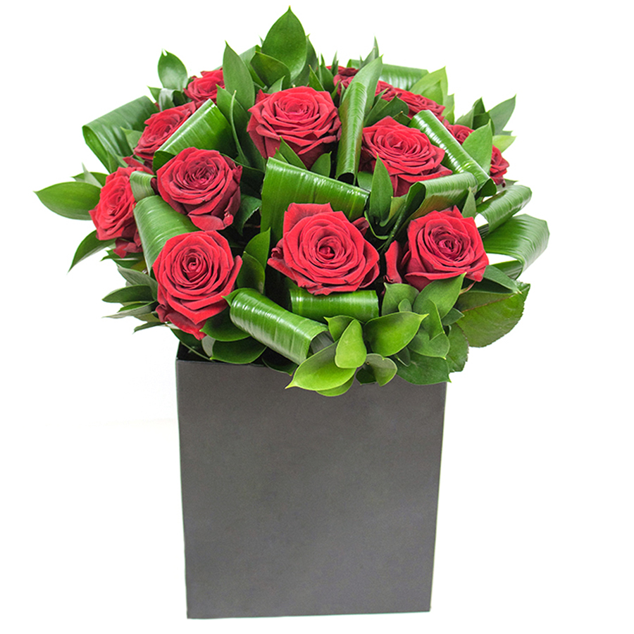 Dive into the allure of our red rose bouquet, a sophisticated combination of richly hued roses, fresh aspidistra leaves, and delicate ruscus. Designed with creativity and flair, this arrangement perfectly captures the essence of luxury and natural beauty. Each bloom is carefully chosen to ensure peak freshness, making this bouquet a remarkable centerpiece for any setting.
