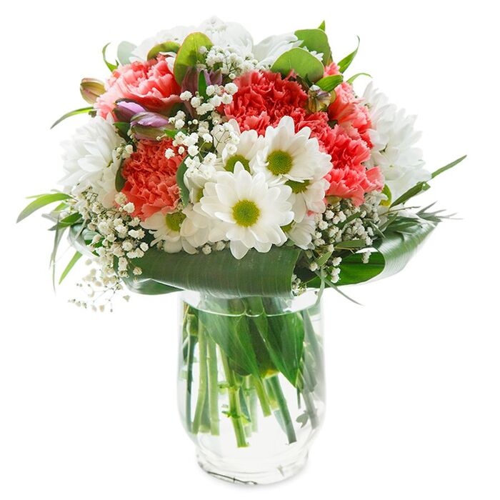 Beautiful combination of white and pink flowers. The bouquet was fresh and lasted several days.
